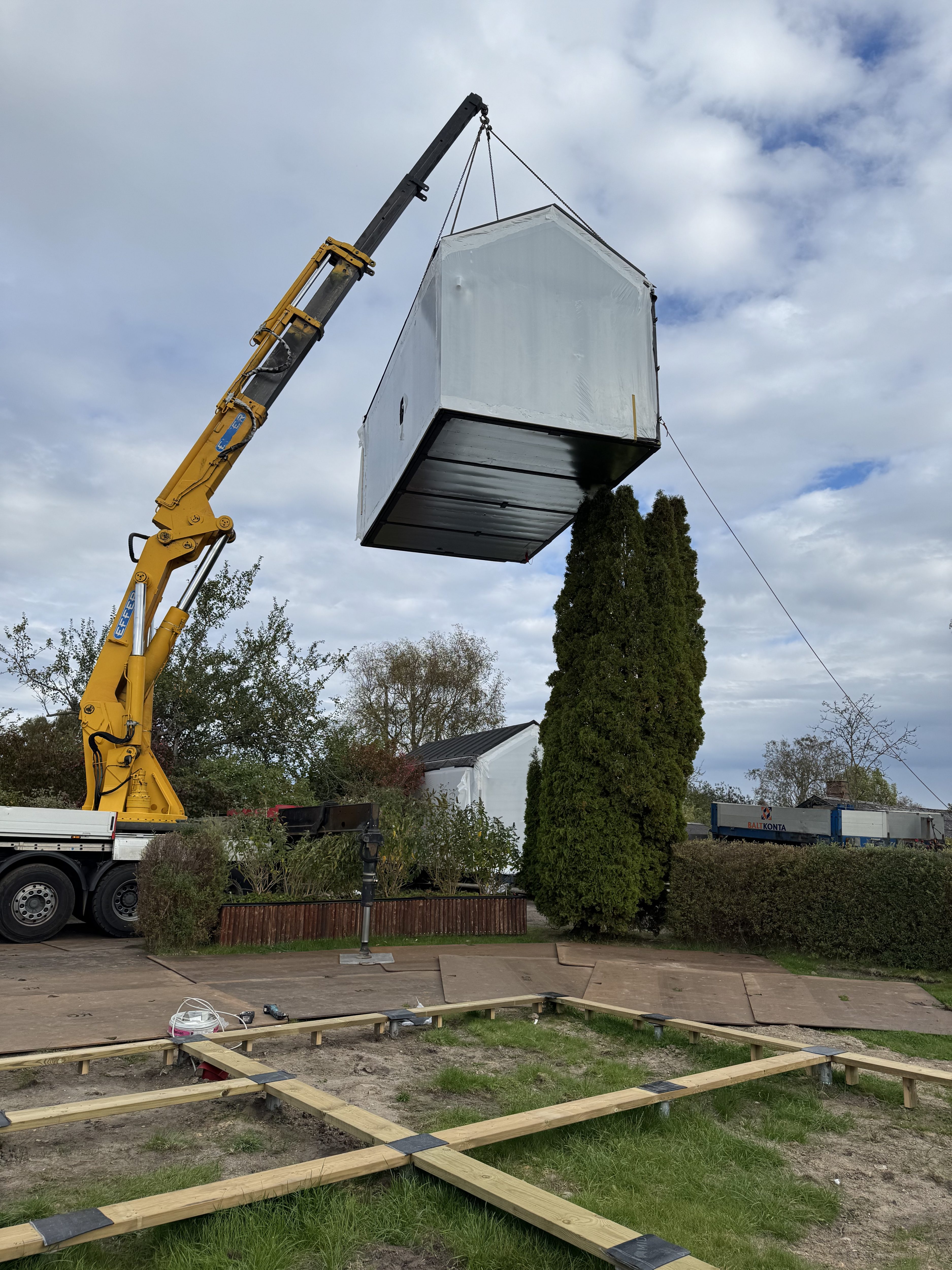 Vi var med hele vejen – fra ansøgning om byggetilladelse og dialog med myndighederne til færdigmelding og ibrugtagning. Derudover koordinerede vi håndværkere i forbindelse med tilslutning til vand, el og kloak, så alle tekniske forhold spillede sammen og var klar til når boligen blev sat på grunden.