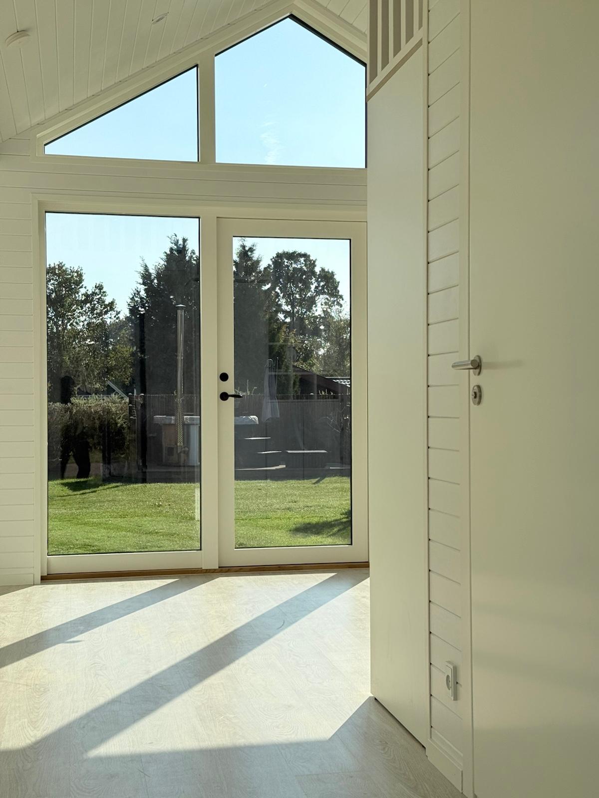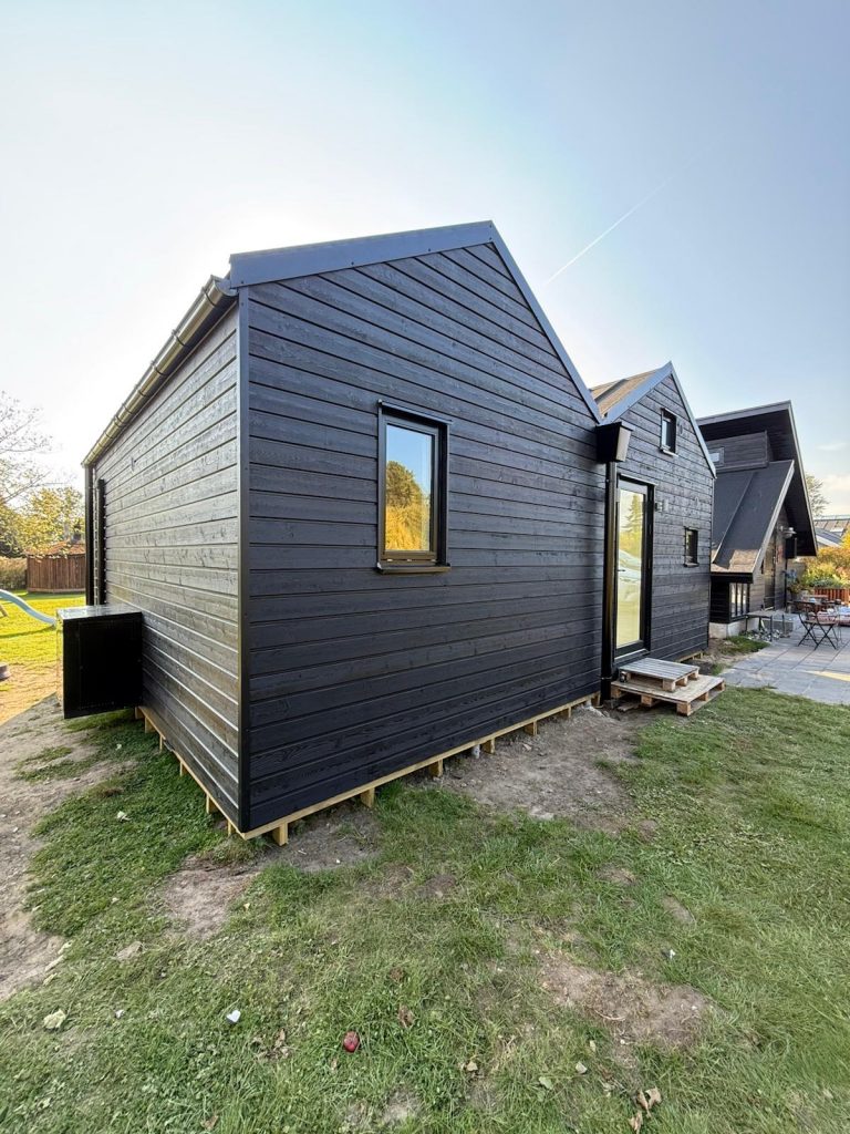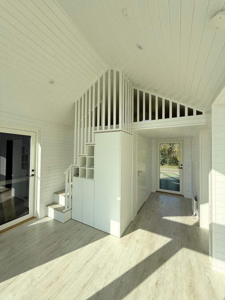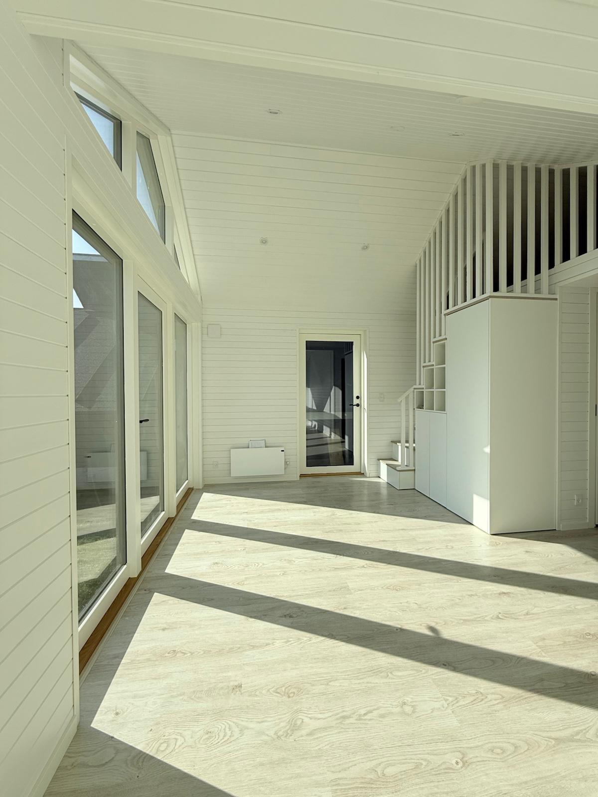 I dag står Saga-modellen som en unik tilføjelse til deres sommerhus, skabt ud fra netop deres ønsker. Udefra fremstår huset stilrent og harmonisk. Indenfor mødes man af lys, højt til loftet og gennemtænkte løsninger.