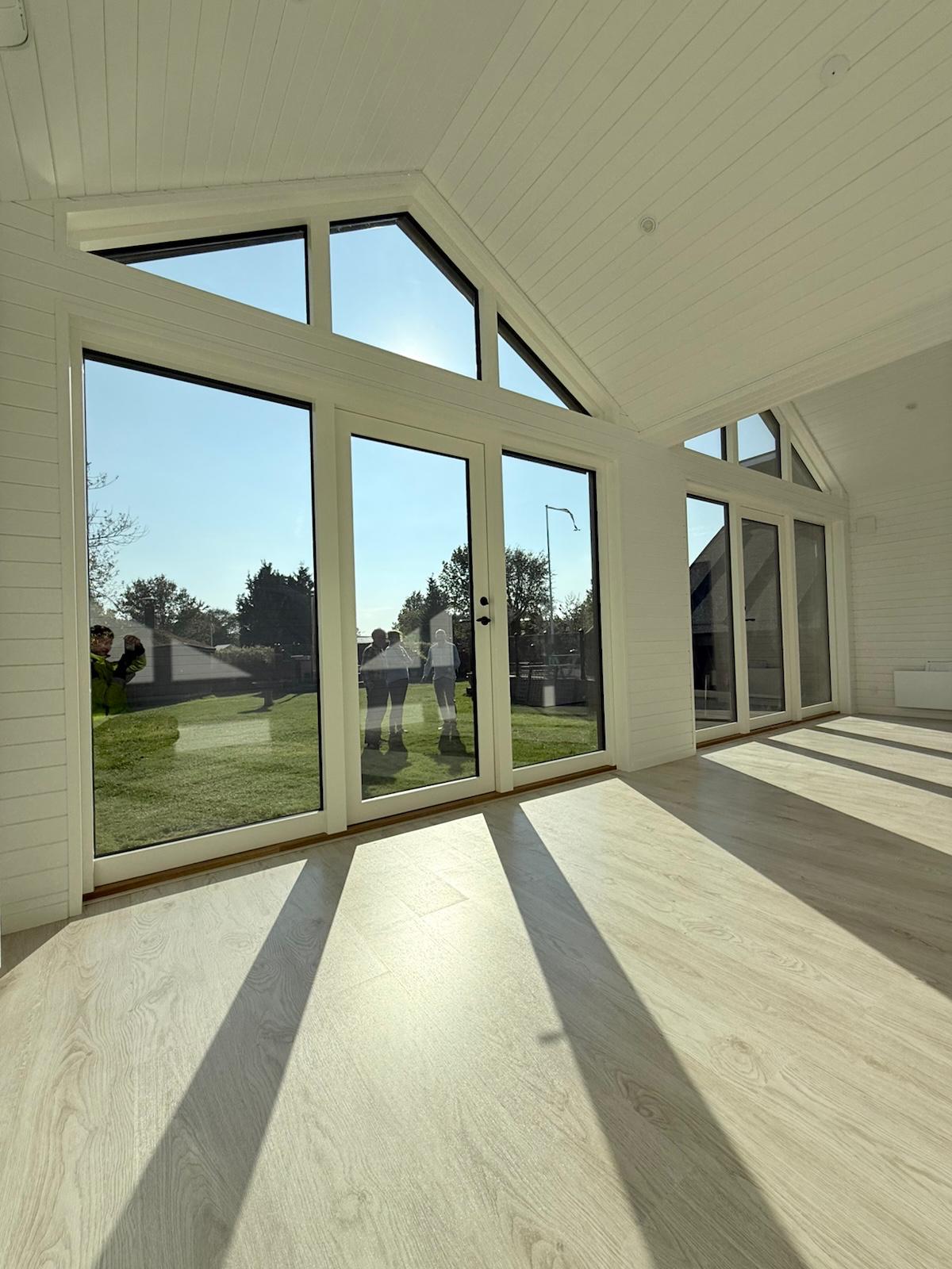 Vinduespartier blev optimeret for at trække naturen og lyset helt ind i boligen. Materialevalg blev nøje udvalgt, så de både afspejlede familiens stil og skabte den varme, moderne atmosfære, de drømte om.